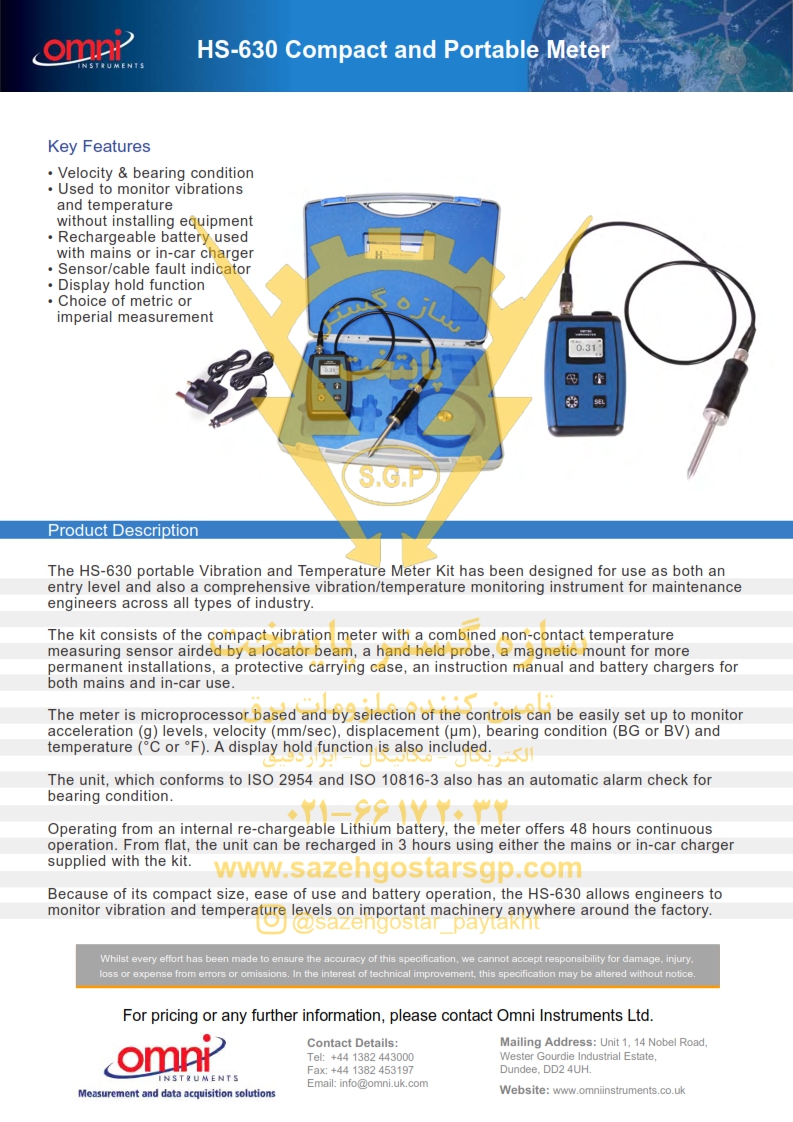 The HS-630 portable Vibration and Temperature Meter Kit has been designed for use as both an entry level and also a comprehensive vibration/temperature monitoring instrument for maintenance engineers across all types of industry
