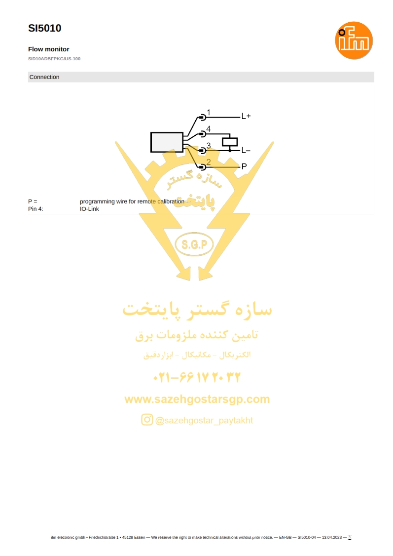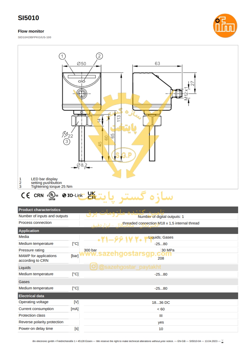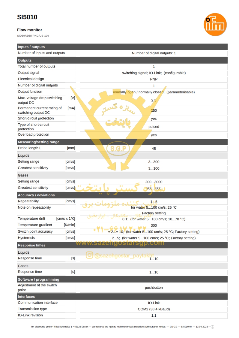 ویژگیهای فنی ifm SI5010 در یک نگاه:
